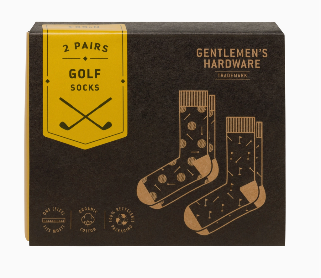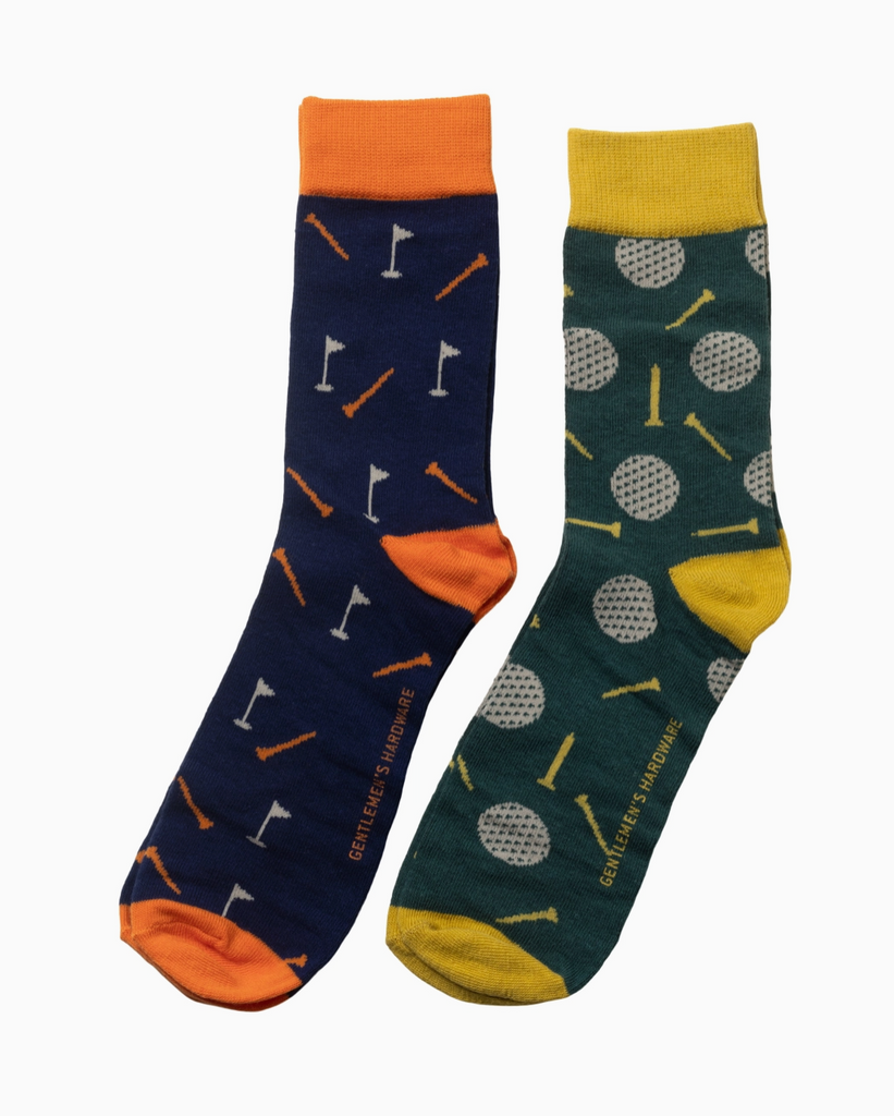 Two pairs of socks for the golf lover with the perfect pop of color for a casual game or competitive statement. Made from organic cotton.